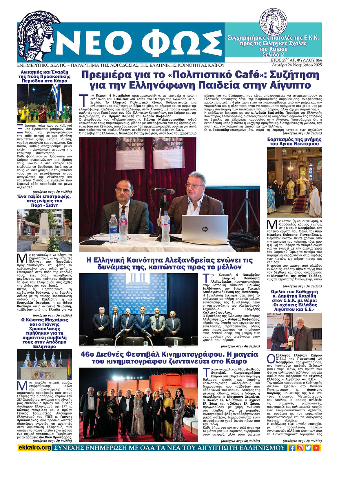Το πρωτότυπο άρθρο https://ekkairo.org/2025/11/24/neo_fos_24_11_2025/ ανήκει στο Νέα – Ελληνική Κοινότητα Καΐρου .