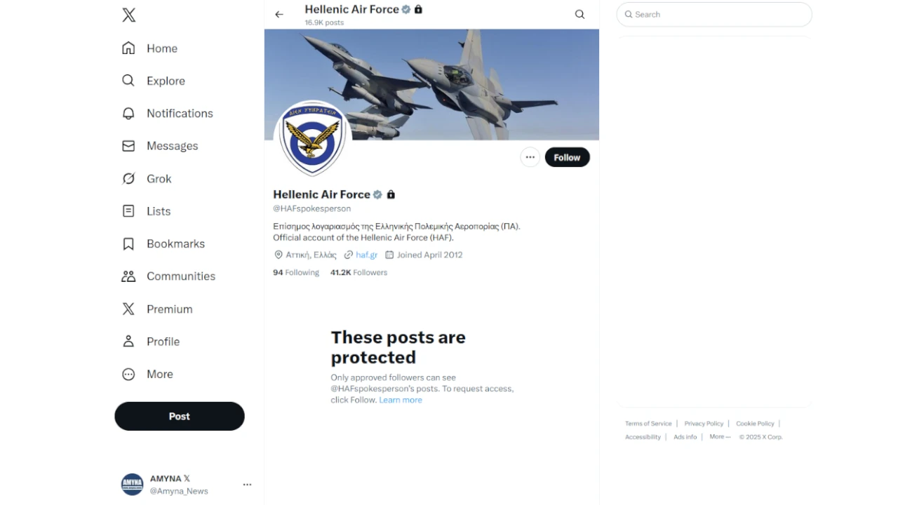 Η Πολεμική Αεροπορία διέγραψε ανάρτησή της στα Μέσα Κοινωνικής Δικτύωσης και όρισε τον λογαριασμό της στο X σε ιδιωτικό, μετά από αντιδράσεις Τούρκων.
