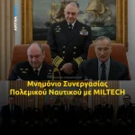Μνημόνιο συνεργασίας (ΜοU) μεταξύ του Πολεμικού Ναυτικού και της εταιρείας MILTECH HELLAS Α.Ε., υπεγράφη στο Γενικό Επιτελείο Ναυτικού, από τον Αρχιεπιστολέα ΓΕΝ Υποναύαρχο Κωνσταντίνο Κοντογιαννάκο ΠΝ και τον Πρόεδρο της εταιρείας Χρήστο Χούμπαυλη, παρουσία του Αρχηγού ΓΕΝ Αντιναύαρχου Δημήτριου-Ελευθέριου Κατάρα ΠΝ.