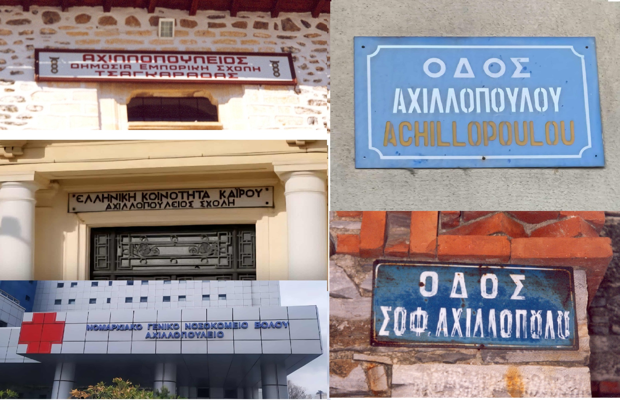 Στο Βόλο, με τη χορηγία των  Κωνσταντίνου και Νικολάου Αχιλλόπουλου, στη μνήμη του πατέρα τους Ευάγγελου, κτίστηκε (1903-1906) το Αχιλλοπούλειο Νοσοκομείο, κεντρικό νοσηλευτικό ίδρυμα της Μαγνησίας ως τις μέρες μας, διαθέτοντας 5.000 γαλλικά φράγκα.