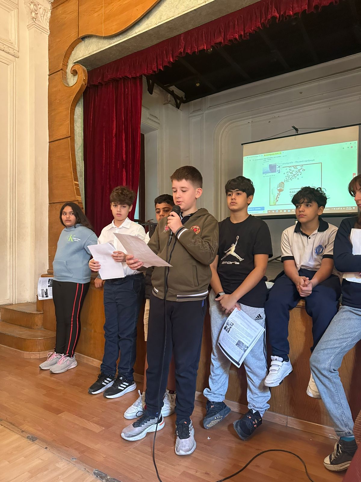 Στη συνέχεια, κάθε τάξη παρουσίασε ποιήματα αφιερωμένα στο Πολυτεχνείο. Λόγοι λιτοί, καθαροί, παιδικοί, μα βαθιά ουσιαστικοί, υψώθηκαν μέσα στις αίθουσες σαν μικρά φαναράκια που φωτίζουν τη μνήμη, συνοδευόμενοι από τραγούδια της εποχής που αντηχούν ως σύμβολα ελπίδας και αγώνα.
