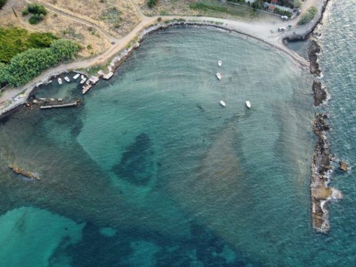 Εκεί που άλλοτε έδεναν καράβια, σήμερα δεν υπάρχουν παρά βυθισμένες γραμμές από τείχη και πέτρινες βάσεις, ορατές μόνο από ψηλά ή σε πολύ καθαρές μέρες από την επιφάνεια.