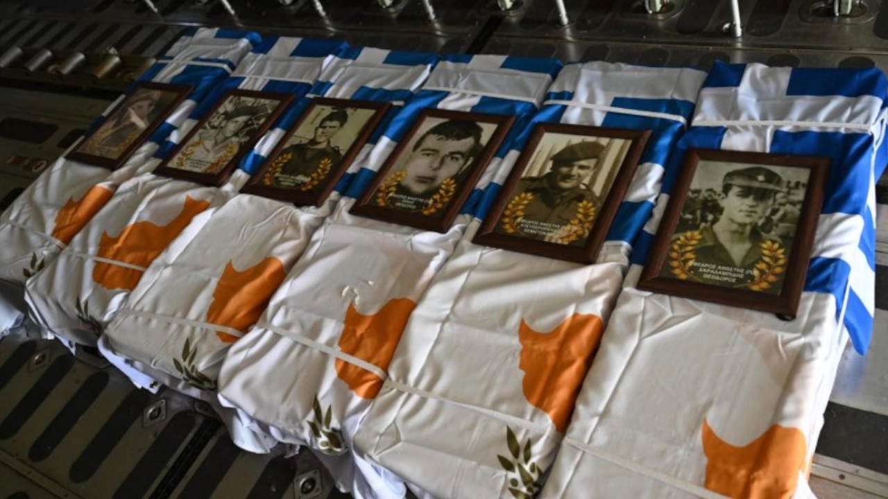 Χθες (21 Ιουλίου), παρουσία του Προέδρου της Κυπριακής Δημοκρατίας Νίκου Χριστοδουλίδη, της Προέδρου της Βουλής της Κυπριακής Δημοκρατίας Αννίτας Δημητρίου, της εκπροσώπου του Προέδρου της Βουλής των Ελλήνων Νίνας Κασιμάτη, του Υπουργού Άμυνας της Κυπριακής Δημοκρατίας Βασίλη Πάλμα και του Υφυπουργού Εθνικής Άμυνας Θανάση Δαβάκη, πραγματοποιήθηκε στη Λευκωσία η τελετή επίσημης παραλαβής λειψάνων των 6 πεσόντων: