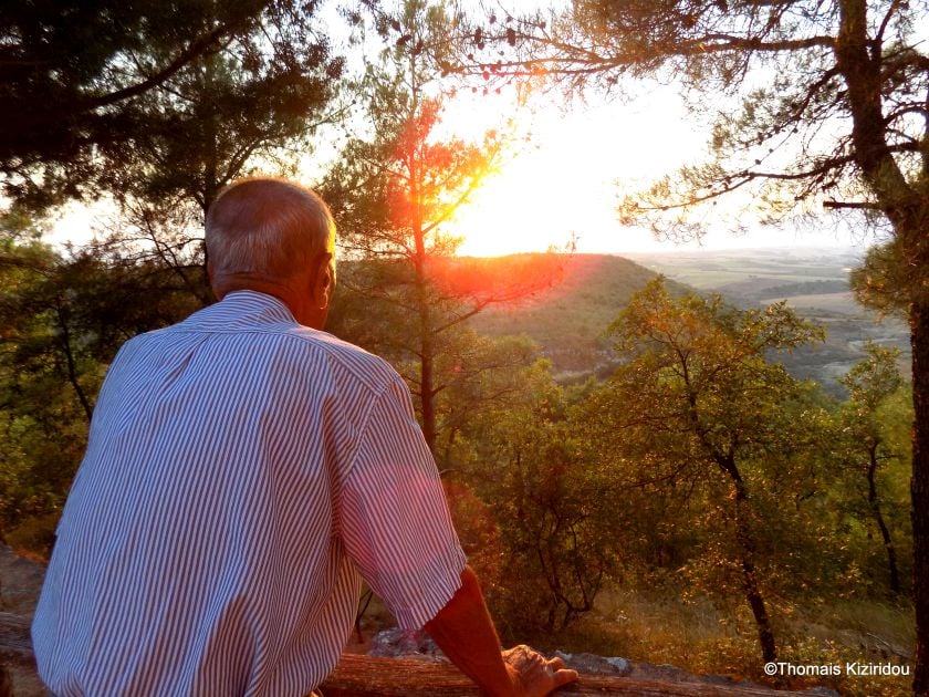 Τον θείο Μίμη τον γνώρισα μέσω του Αλεξίου Στεφανίδη το 2016. Τότε ήταν που τους πρότεινα να τους φωτογραφίσω στον λόφο του Προφήτη Ηλία Αγροσυκιάς, στο προσωπικό προσκύνημα του θείου Μίμη, το ξωκλήσι του προφήτη Ηλία. Η ψυχική επικοινωνία που είχαν, καθώς και η αγάπη και ο αλληλοσεβασμός τους αποτυπώθηκε στις φωτογραφίες και η σκέψη μου άρχισε να γράφει για αυτήν την κατάσταση. Αυτή η φωτογράφιση λειτούργησε ως πρόδρομος για την κινηματογραφική καταγραφή της ιδιαίτερης καθημερινότητας αυτού του ανθρώπου.